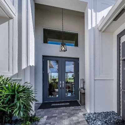 - A modern farmhouse outdoor flush mount pendant light by the LNC brand.