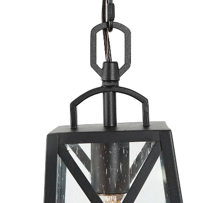 Why not brighten up your house’s exterior and interior with this trapezoid outdoor flush mount pendant light by LNC? This outdoor flush mount pendant light features a sturdy matte black frame with a clear seedy glass shade. The solid aluminum construction and seedy glass add farmhouse vintage appeal chic. The classic hanging lantern with a nautical feel works well in rustic country decors or seaside homes, great for modern, farmhouse, rustic, traditonal or transitional style decor.