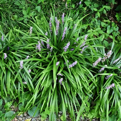 Commonly known as Monkey Grass, Liriope forms a dense evergreen groundcover with a grass-like appearance. Liriope bears striking spikes of lavender flowers in summer and naturalizes nearly any setting. Thriving in difficult areas and a wide range of climates, this low-growing perennial is an excellent problem-solver for the landscape. The compact clumping nature of ‘Big Blue’ is perfect between pavers, in borders, or as a “spiller” in mixed containers. This remarkably tough plant is virtually maintenance-free and is heat and drought tolerant once established.