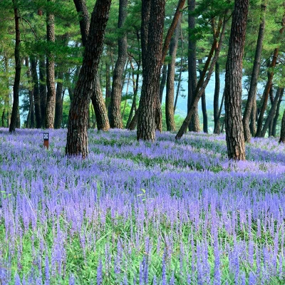 - Lilac-blue flower spikes rise from grassy, strap-like leaves