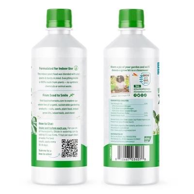 Specially formulated for indoor use, the Back to the Roots Organic Premium Blend Indoor Plant Food is 100% made from plants. The premium blend helps grow stronger plant roots and larger plants, so you and your family can enjoy your houseplants. When used as directed, this plant food will yield 95 applications. Blended with your plants and your family in mind, this houseplant food is made without synthetic chemicals or animal waste. The Back to the Roots Organic Premium Blend Indoor Plant Food is a great addition to your at-home gardening supplies!