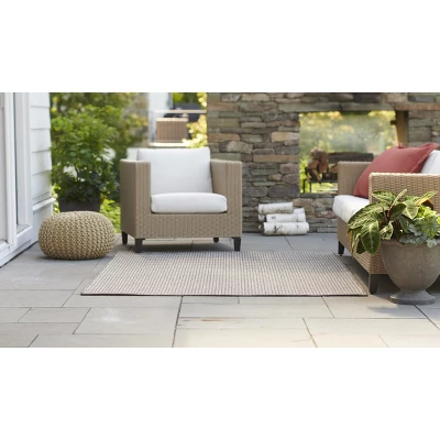 Add a warm, welcoming vibe to your outdoor space with this rustic Basketweave Outdoor Rug from Smith & Hawken. Crafted in a bold coffee-and-cream color combo, this rectangular patio rug comes with a unique basket weave construction that adds character. A polypropylene build makes this rug durable and rugged. Toss it on the floor of your patio and liven up the area for any occasion.