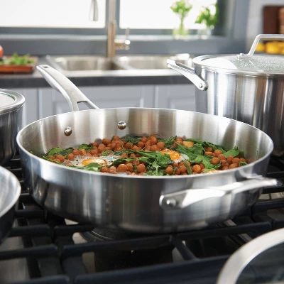 Calphalon Premier Stainless Steel Cookware delivers precision cooking performance, with an elegant, classic look that will inspire any chef. The 3-layer metal construction features a heavy-gauge aluminum core that distributes heat evenly and allows you to brown, sear, and saute with consistency and confidence. The elegant stainless steel finish is dishwasher-safe for easy cleanup. Calphalon Premier Stainless Steel Cookware is oven-safe up to 450 degrees F so it can go from the stovetop to the oven for heating and cooking versatility. Unlock your culinary genius with Calphalon Premier, and experience superior cookware that’s built to last.