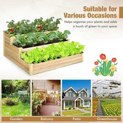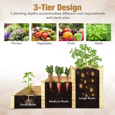 - 3-Tier Stair-Step Design: The elevated garden bed features 3 tiers and provides 3 different planting areas, which are suitable for cultivating flowers, vegetables, herbs, fruits, and more. Moreover, the 3-tier stair-step design can not only keep sections divided & organized but also allow you to cultivate plants of different depths.