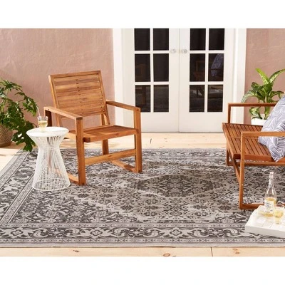 - TRADITIONAL DESIGN: The Nicole Miller Patio Country Dahlia rug collection features a timeless design for three-season spaces in your home, with a beautiful, traditional medallion motif framed by a matching border in black and gray.