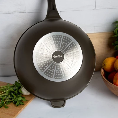 Make delicious stir fry and your favorite fried foods with this Goodful Clean Ceramic Nonstick Cast Aluminum Wok. The 12.5 inch size is perfect for making one pan meals, steaming veggies, and much more. The cast aluminum construction is built for exceptional performance and anti-warp durability. The premium Clean Ceramic coating is made without PFAS and PFOA and allows food to gently and easily slide out of the wok for care-free cooking. Grab on tight to the sturdy comfort grip handle and additional helper handle to easily maneuver this stir fry pan. This Goodful Clean Ceramic Nonstick Cast Aluminum Wok is also dishwasher safe for easy cleaning.