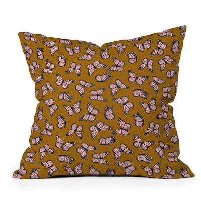 Little Arrow Design Co. Monarch Butterflies Outdoor Throw Pillow Pink/Brown – Deny Designs