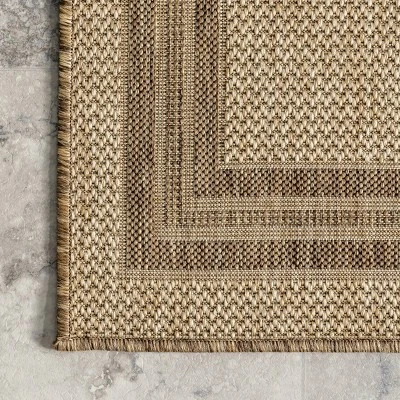 Soft color, classic design and versatility is now yours with this beautiful machine-made indoor/outdoor rug. Crafted using durable synthetic materials, this rug cushions your feet for ultimate comfort, and can create the perfect ambiance whether you decide to use these indoor or outdoor. A neutral color scheme with a class border makes this the ideal rug that pairs with any of your existing decor. Enjoy your time at home with our pet-friendly and easy to clean area rugs.
