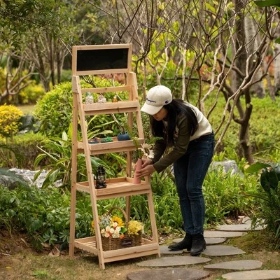 The decorative wooden 4 tier accent ladder shelf is an exquisite piece of furniture that combines both style and functionality. Made from high-quality “china fir composite board,” this wooden display rack is durable and built to last. Its unique and versatile design makes it suitable for any room, while its four tiers provide ample space for displaying decorative items, storing books, or organizing everyday items. The chalkboard feature adds an extra touch of convenience, allowing you to easily label and organize your belongings. Whether used as a standalone piece or combined with other furniture, the decorative wooden 4 tier shelf adds sophistication and charm to your home decor. Elevate the aesthetics of your living space with this stunning and practical piece of furniture.