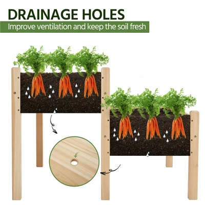 - Here comes a practical gardening helper, a 2-tier raised wooden planting bed. This bunk-bed-design planting box is made of natural fir wood and each bed has a strong weight capacity of 100kg/220lb. Divided into two parts, you can use this elevated planting bed for flowers, vegetables, and herbs together! Thanks to its ergonomic design, you won’t need to bend down for a long time in the garden, just stand up and manage your lovely plants happily. What are you waiting for? Enjoy gardening with our 2-tier raised planting bed now!
